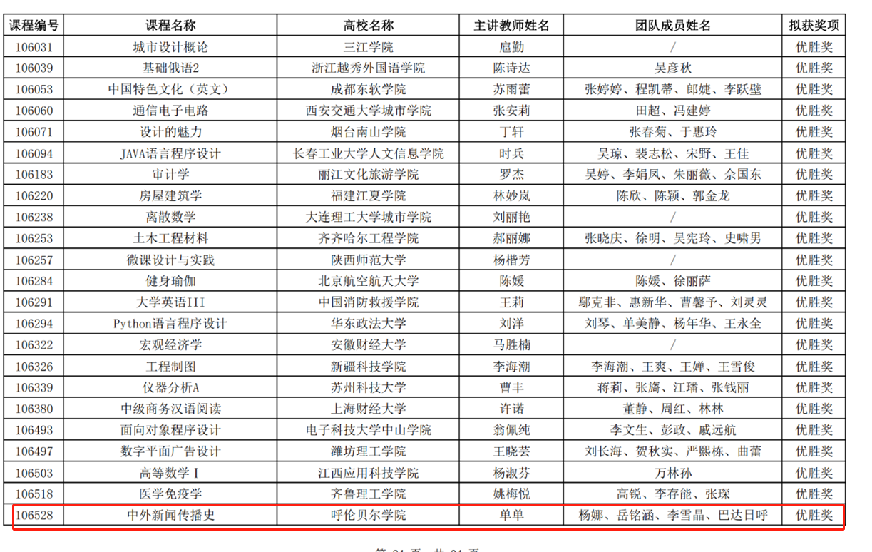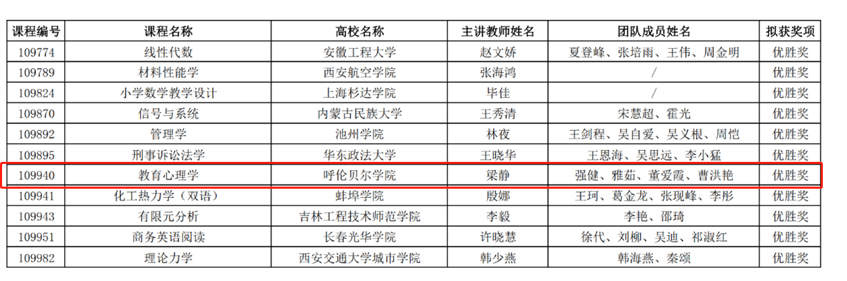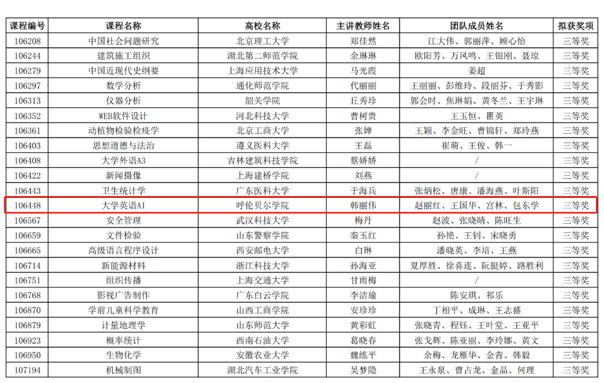 本届比赛有来自全国各高校的数千余门课程通过线上参赛,竞争异常激烈。在激烈的角逐中,我校《大学英语AI》韩丽伟团队凭借出色的教学设计与实践,荣获全国三等奖,充分展示了学校在英语教学改革方面的创新成果。同时,《中外新闻传播史》单单团队和《教育心理学》梁静团队也凭借各自在混合式教学中的独特见解和实践经验,荣获优胜奖,为学校赢得了荣誉。